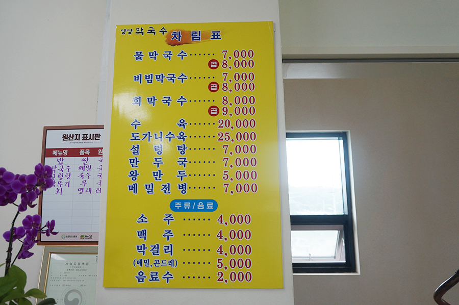 양양막국수 메뉴판은 참고하시면 좋을 것 같아요.