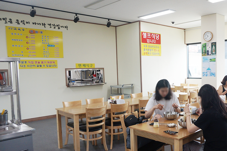 다 먹고 나면 그릇은 퇴식구에 넣어주시면 된답니다. 거의 모든 것들이 셀프로 이루어지고 있는 곳이었어요. 가격대를 생각하면 무난하게 먹을만 하기는 하지만, 굳이 여긴 꼭 가야 한다! 그런 곳은 아니라고 볼 수 있겠네요. 양양 근처에서 도저히 음식점을 찾을 수 없다 싶을 때, 가볍게 막국수 즐기고 싶으신 분들은 참고하시면 될 것 같아요 :-)