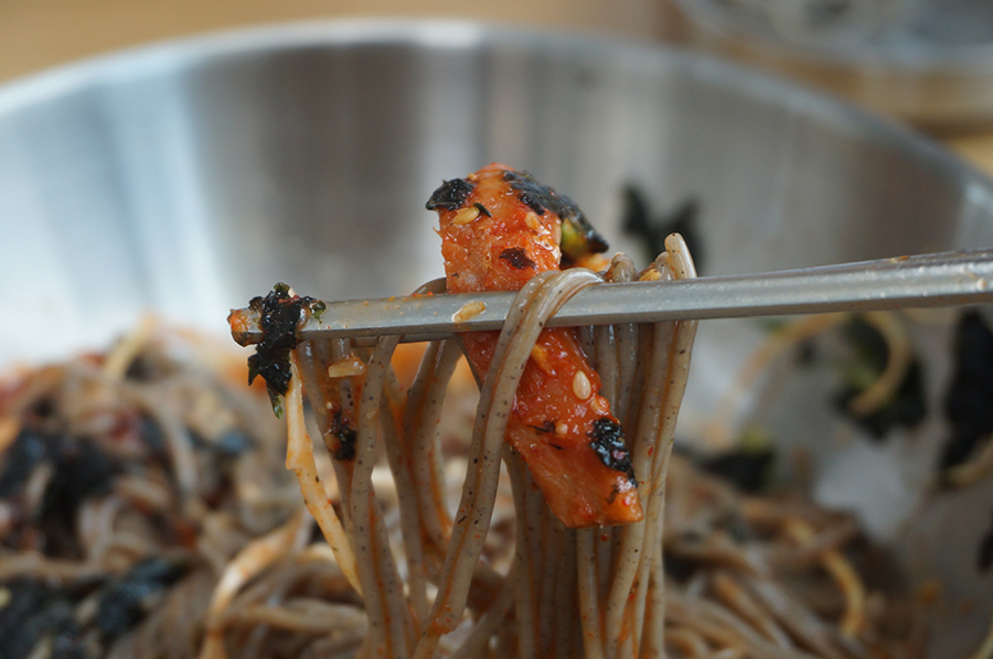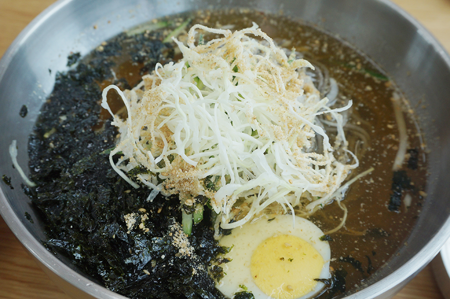 시원하고 담백한 국물을 원하시는 분들은 물막국수 나쁘지 않은 것 같아요. 그치만 전 조금 더 자극적인 메뉴를 원했어서 비빔막국수를 주문할걸 살짝 후회는 했어요! 그냥 무난무난한 막국수 맛.