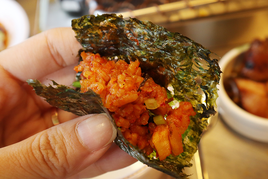 아무래도 양념이 되어 있는 메뉴들이다보니, 전문성을 가진 직원 분께서 직접 하나하나 타지 않게 구워주시는데요. 이렇게 구워주시는 건 정말 좋아요! 특히 양념 메뉴는 타기 쉬운 메뉴라, 더 감사하더라고요!
