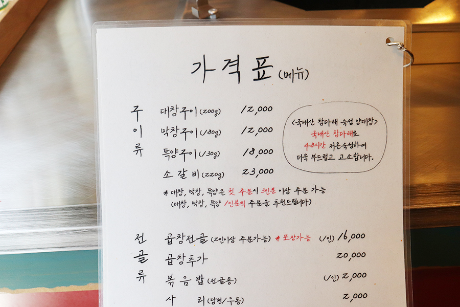 이름은 세광양대창이라는 곳이고, 가게 내부는 뭔가 8~90년 대의 엔틱한 분위기라 좋더라고요. 이른 시간에 가서 사람들이 그리 많지는 않았는데 저녁 시간대에는 웨이팅이 발생할 수도 있는 곳이라고 해요.