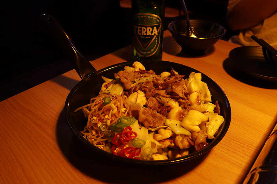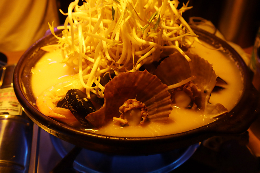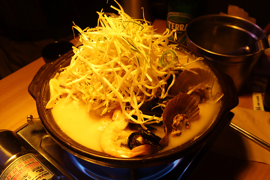 저희는 나가사끼 짬뽕탕이랑 돼지고기볶음 두가지 메뉴로 주문했는데요. 가장 먼저 나가사끼 짬뽕탕이 나왔어요. 숙주가 정말 듬뿍 올라간 짬뽕탕. 숙주 뿐만 아니라 가리비, 조개, 오징어 등등 여러가지 해산물들도 푸짐하게 들어가있는 메뉴라 볼 수 있어요. 처음에는 국물이 살짝 밍밍하다 싶었는데, 팔팔 끓이니까 꿀 맛!