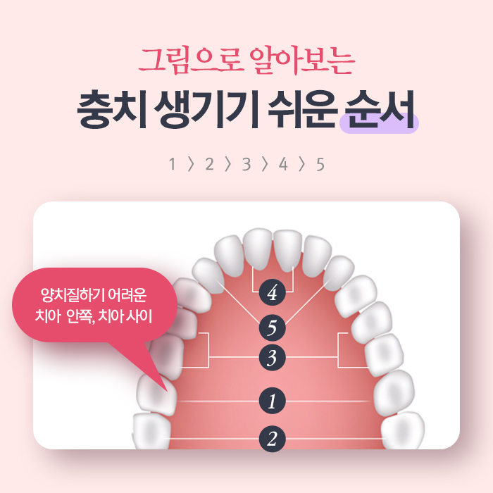 우선 물리적으로 입 안 가장 구석에 위치한 자연치까지 칫솔모가 골고루 도달하기 힘들고